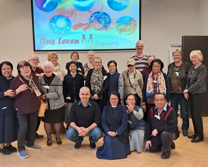 Op dat “voetstappenblad” schreven we wat we geleerd hadden en wat ons van dat bepaalde thema het meeste bij gebleven was, voor mij persoonlijk was dat “als je materiële dingen deelt, houd je zelf minder over, maar als je liefde deelt, dan wordt het alleen maar méér.” Dat we deze bevindingen in de kleine groepjes gedeeld hadden, volgde de plenaire afsluiting en een hartelijk afscheid van de zusters. We hopen hen volgend jaar weer te ontmoeten op de zesde bezinningsdag!