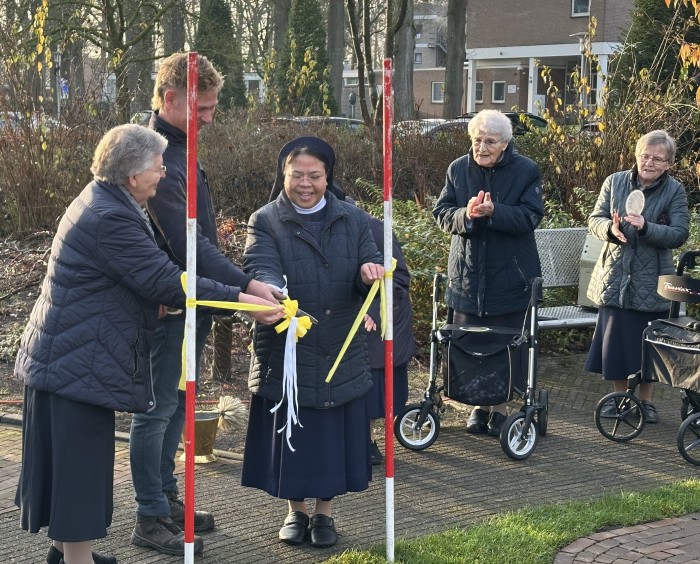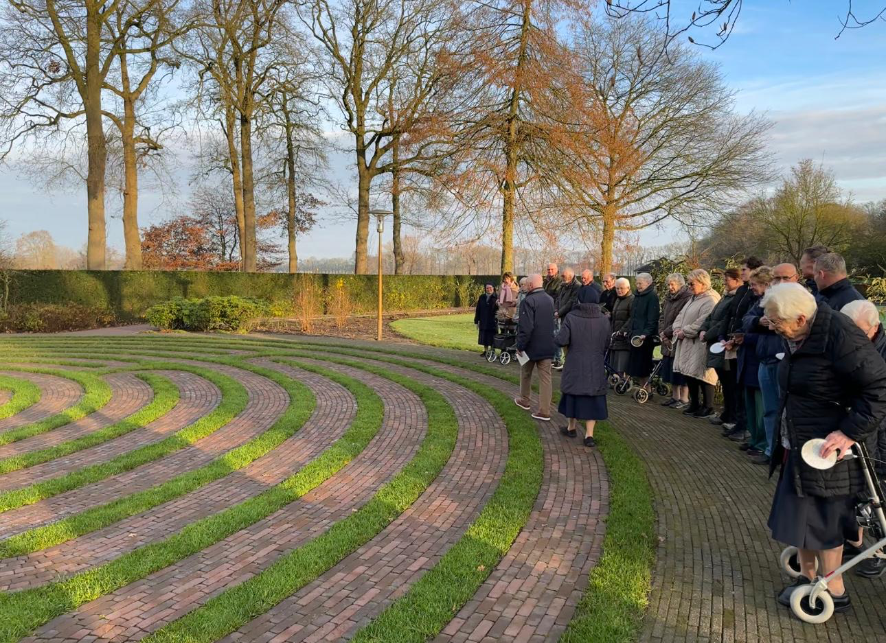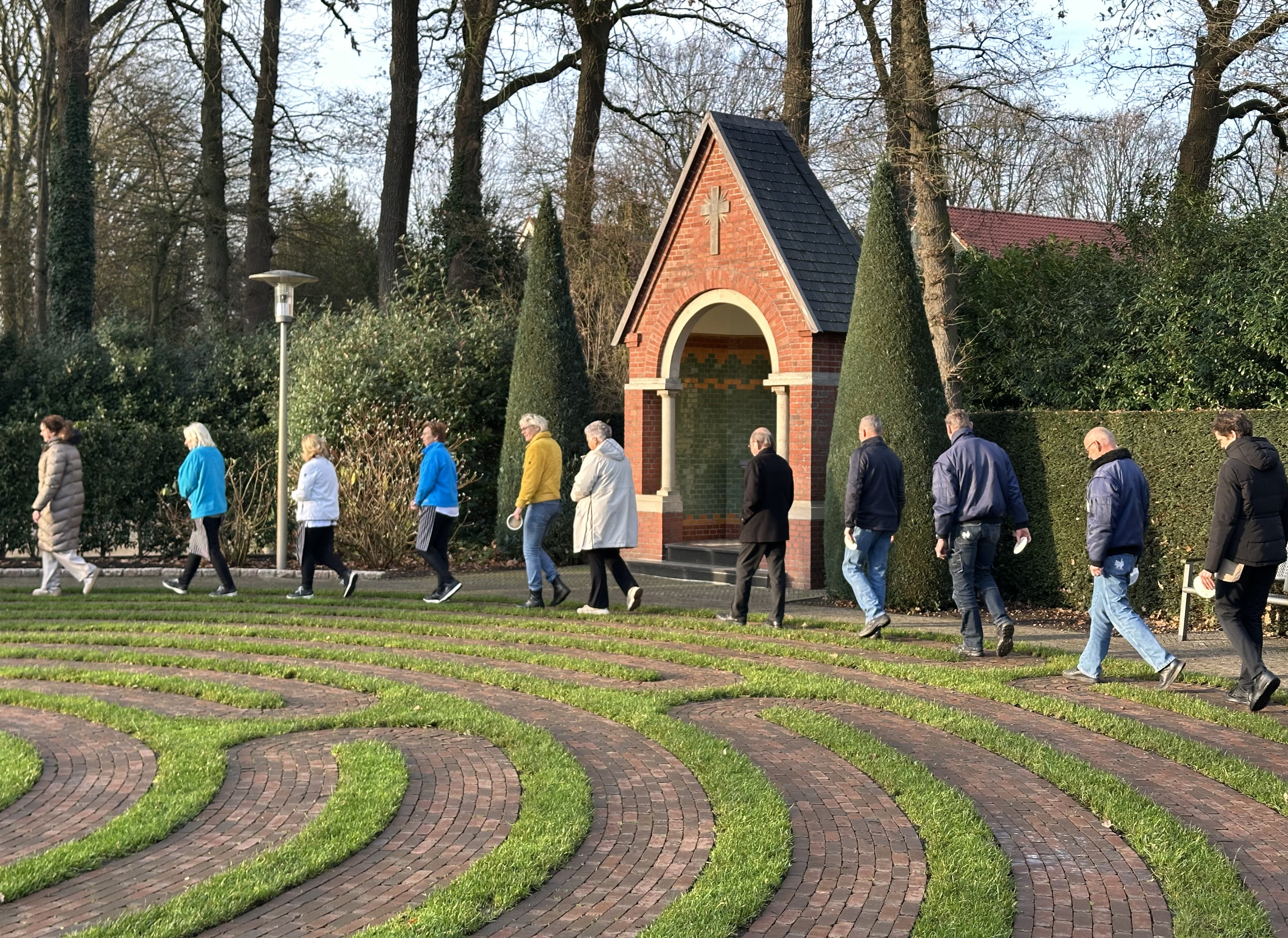 U weet dat Jezus, God-met-ons, in alle klaarheid heeft gezegd: “Ik ben de weg, de waarheid over jouw leven. Loop langs Mijn weg, dan loop je nooit verloren.” Toch zegenen we vandaag een labyrint in, een soort doolhof. Is dat niet met elkaar in strijd? Dat weer niet. Ons leven zelf is vaak, met al zijn up’s en down’s, goede en kwade tijden, een labyrint. En door het labyrint hier te lopen, gaan we al lopend ons ons leven te binnen brengen, onder ogen zien, het overwegen en vinden in de goede weg erdoorheen: het lijkt op een soort verdwalen, maar het is in werkelijkheid dwalen om gevonden te worden. Net als in het leven zelf. Daarom zegenen we dit labyrint in. Niet de stenen of het gras, en zo. Neen, wij lopen erop en bidden op die manier voor al die mensen die dit labyrint zullen lopen, dat zij één voor één en al lopend hier door God gezegend mogen worden en door Hem gevonden.