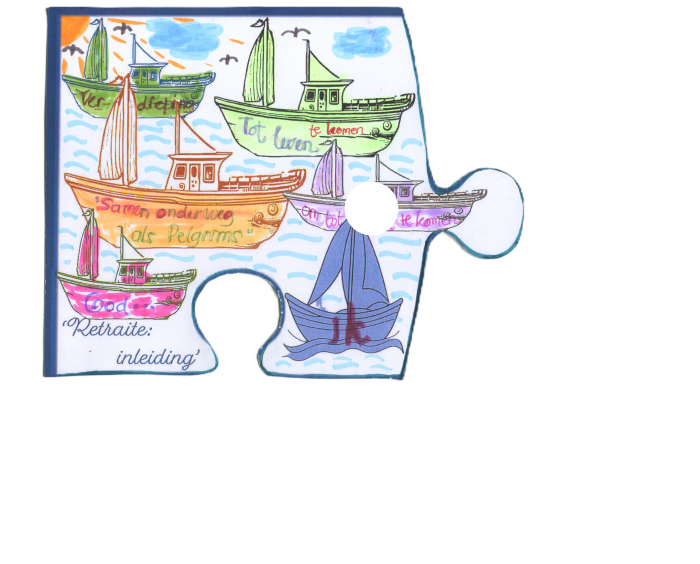 Eigenlijk kan ik dit helemaal niet!- er is ons zoveel aangeboden en om daarin een weg te vinden…., een smal paadje zal al moeilijk zijn. Maar over een smalle ruimte gaat het wel: de deur die toegang geeft aan jou persoonlijk om Jezus te ontmoeten. De deur is niet bedoeld voor groepjes, het gaat om persoonlijke ontmoeting om een moment van aangezicht tot aangezicht- “Wie ben je en wat kom je doen”. “Jezus, ik zoek U omdat ik U vinden wil. Niet één of twee keer, maar steeds weer! “Gelukkig kon dat gezien het aantal sleutels die we moesten voorzien van tekst en tekening. Wat een vondst trouwens om ons ’s middags op creatieve manier te laten zoeken naar het diepere water en ons kennis te laten nemen van elkaars zoektocht. Hoe dichtbij kun je komen!